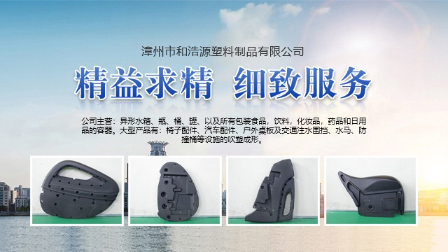 漳州市和浩源塑料制品有限公司是漳州塑料制品行業(yè)的知名企業(yè),本公司擁有專(zhuān)業(yè)的團(tuán)隊(duì),從產(chǎn)品設(shè)計(jì)、模具開(kāi)發(fā)到生產(chǎn),并具有先進(jìn)的生產(chǎn)設(shè)備,精湛的生產(chǎn)工藝,嚴(yán)格的管理,具備根據(jù)用戶(hù)需要進(jìn)行設(shè)計(jì)、制造生產(chǎn)用戶(hù)所需產(chǎn)品的能力。 公司主營(yíng):異形水箱、瓶、桶、罐、以及所有包裝食品,飲料,化妝品,藥品和日用品的容器。大型產(chǎn)品有:椅子配件、汽車(chē)配件、戶(hù)外桌板及交通注水圍擋、水馬、防撞桶等設(shè)施的吹塑成形。 “誠(chéng)實(shí)守信,互惠共贏(yíng)”,是我們的經(jīng)營(yíng)理念;“精益求精,細(xì)致服務(wù)”,是我們的工作準(zhǔn)則,“堅(jiān)持行業(yè)標(biāo)準(zhǔn),創(chuàng)造時(shí)代精品,追求優(yōu)良的品質(zhì)”,是我們的質(zhì)量標(biāo)準(zhǔn)和目標(biāo);“以人為本,科技創(chuàng)新,簡(jiǎn)捷嚴(yán)明,管理規(guī)范”是我們管理機(jī)制的核心內(nèi)容;“生產(chǎn)優(yōu)良產(chǎn)品,提供細(xì)致的服務(wù)”,是我們的承諾。